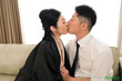 夫の遺影の前で久々の接吻に性欲高まる未亡人